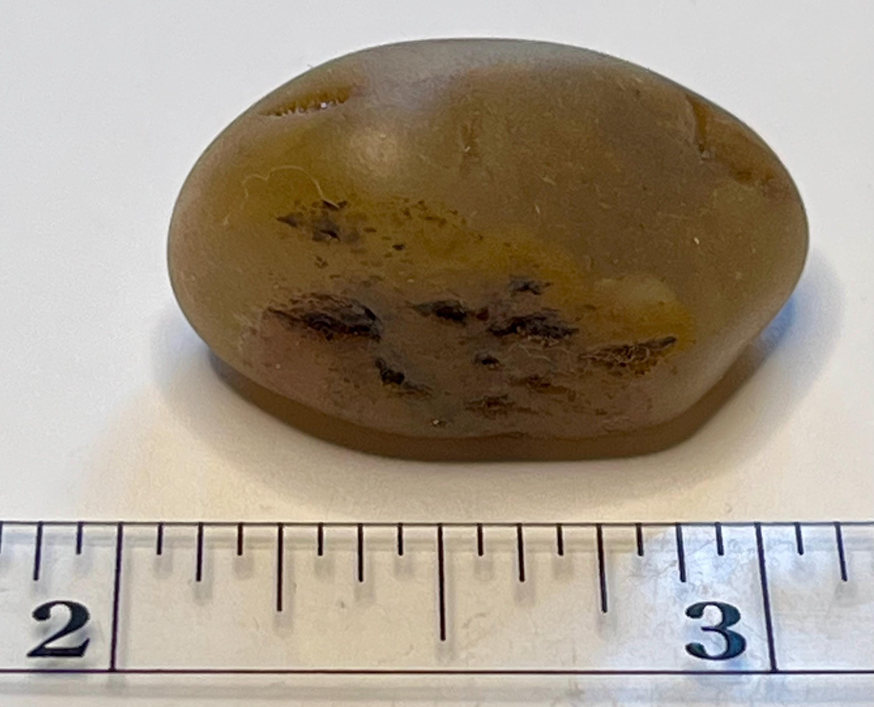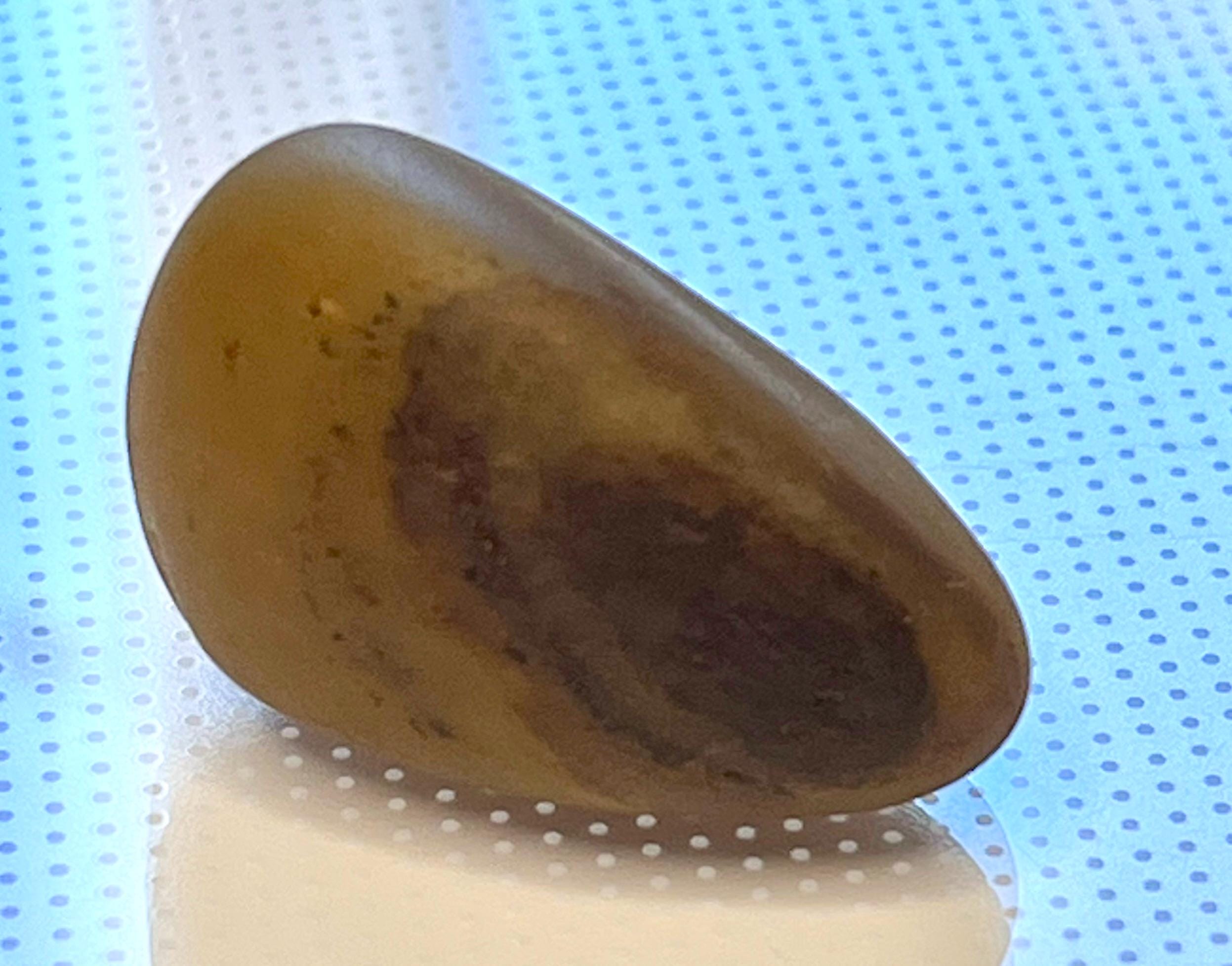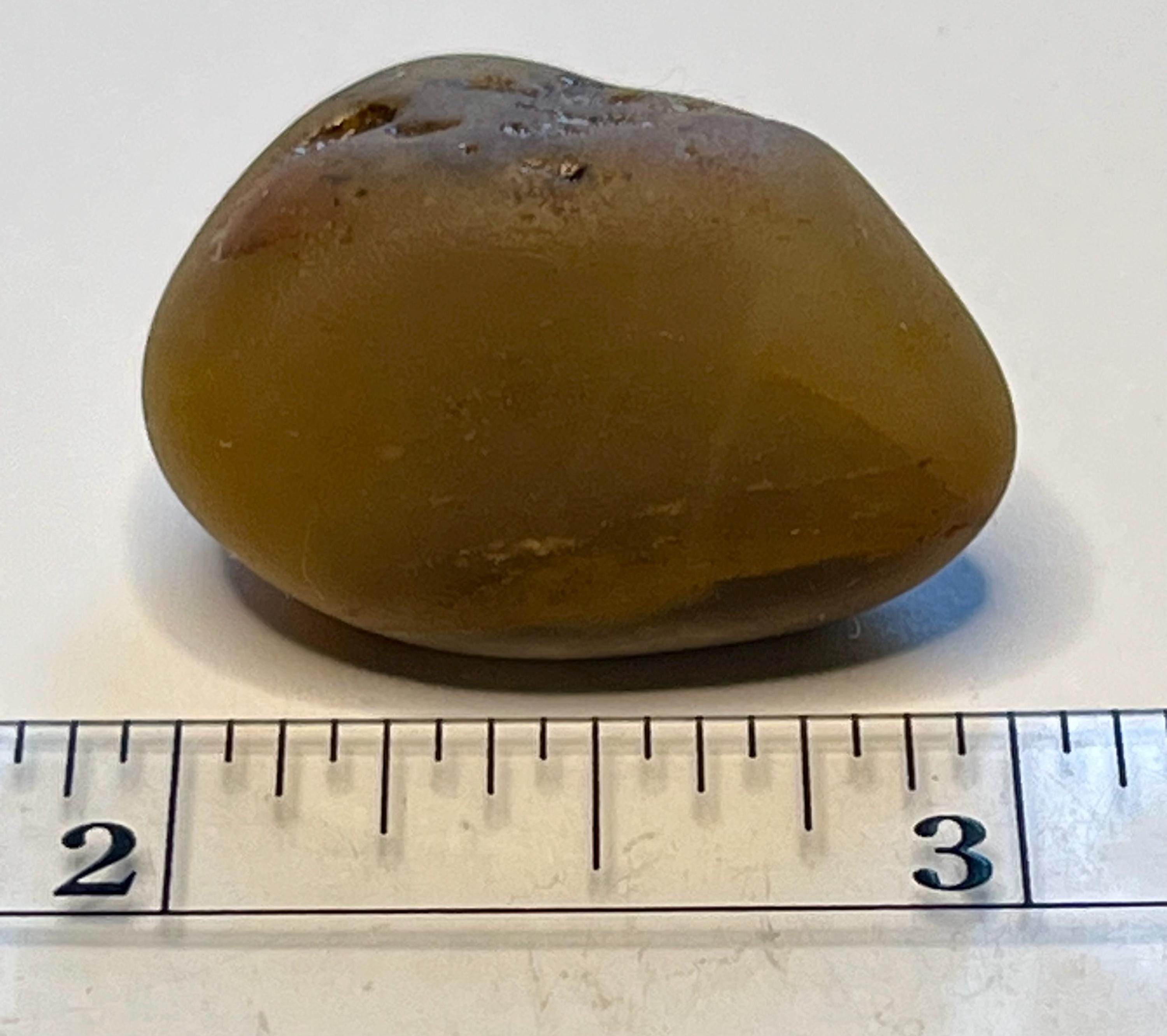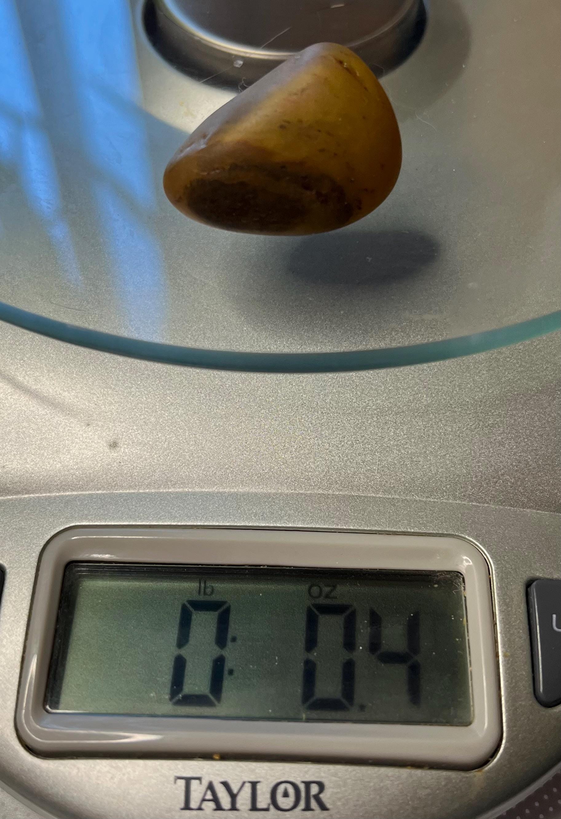 This lovely honey-brown agate tumble weighs approximately **0.4 oz (≈11 g)** and measures about **1″ (≈25 mm)** at its longest dimension. Stage-1 tumbled to a clean, smooth finish, it radiates warm brown, amber, and honey tones that invite comfort and steady grounding.