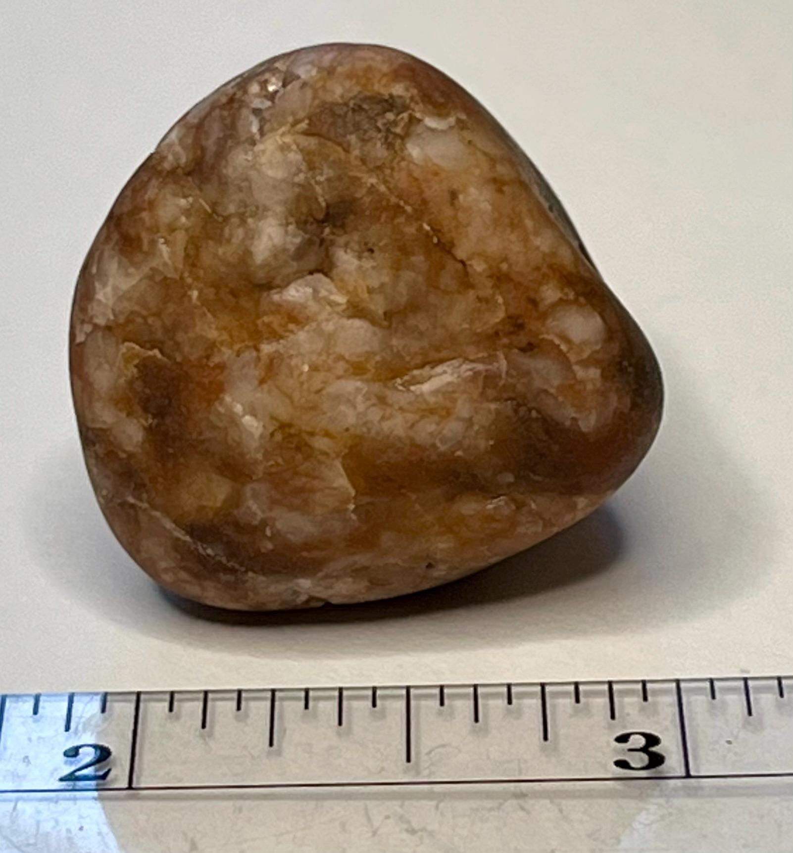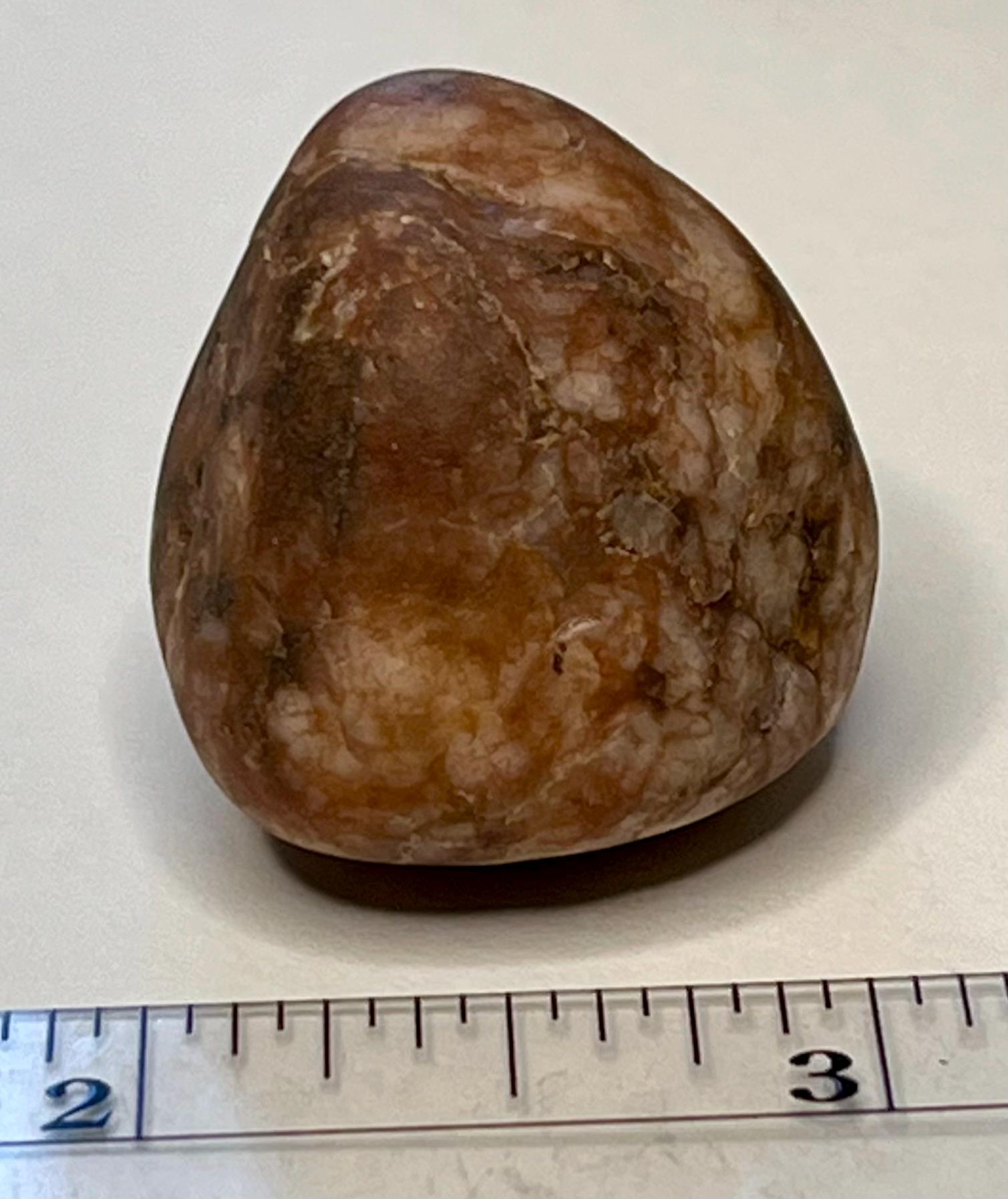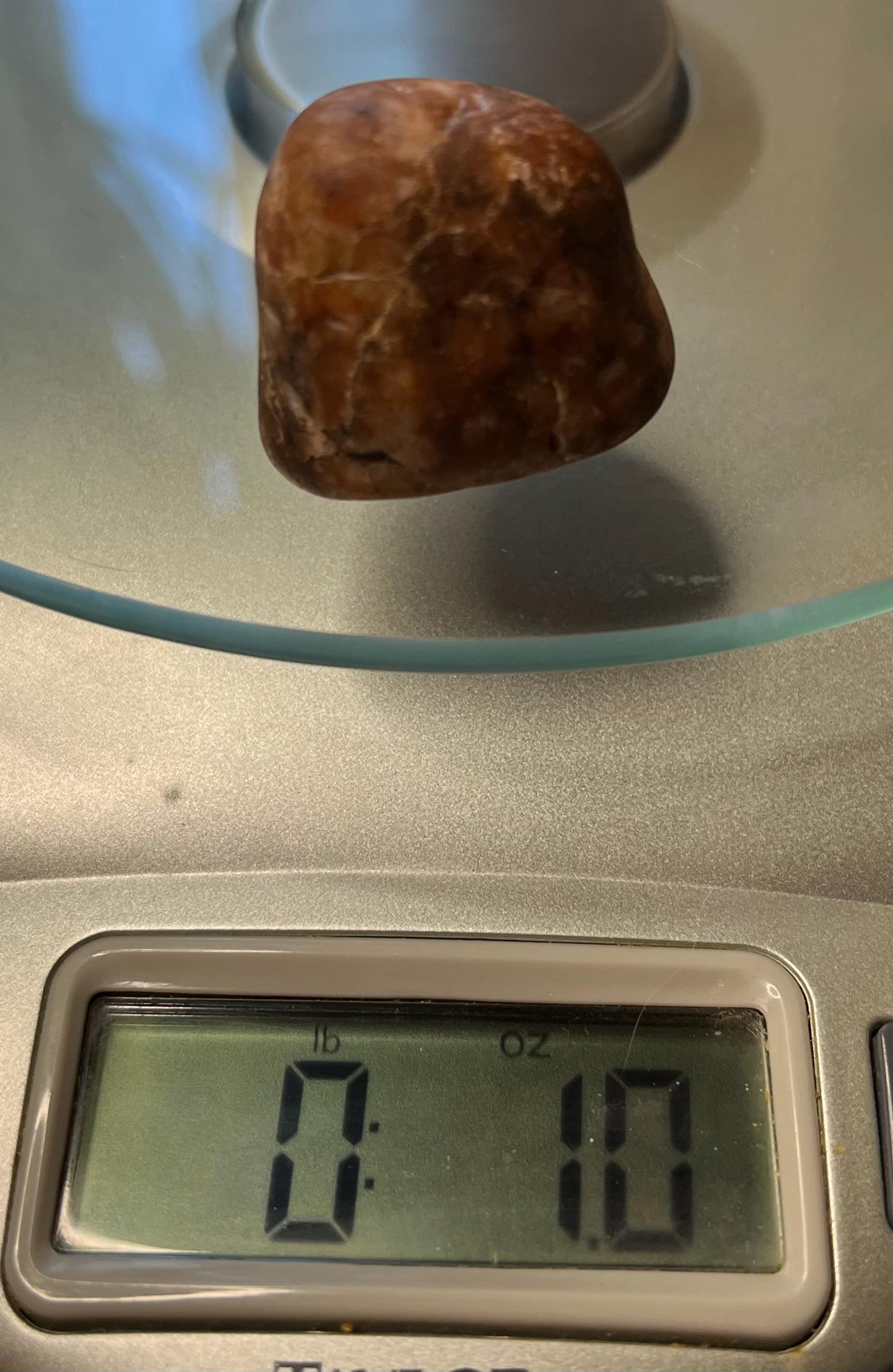 (https://bohomos.com) || This listing is for one (1) tumbled quartz brecciated with red and brown jasper, weighing approximately 1 oz and measuring about 1 inch.