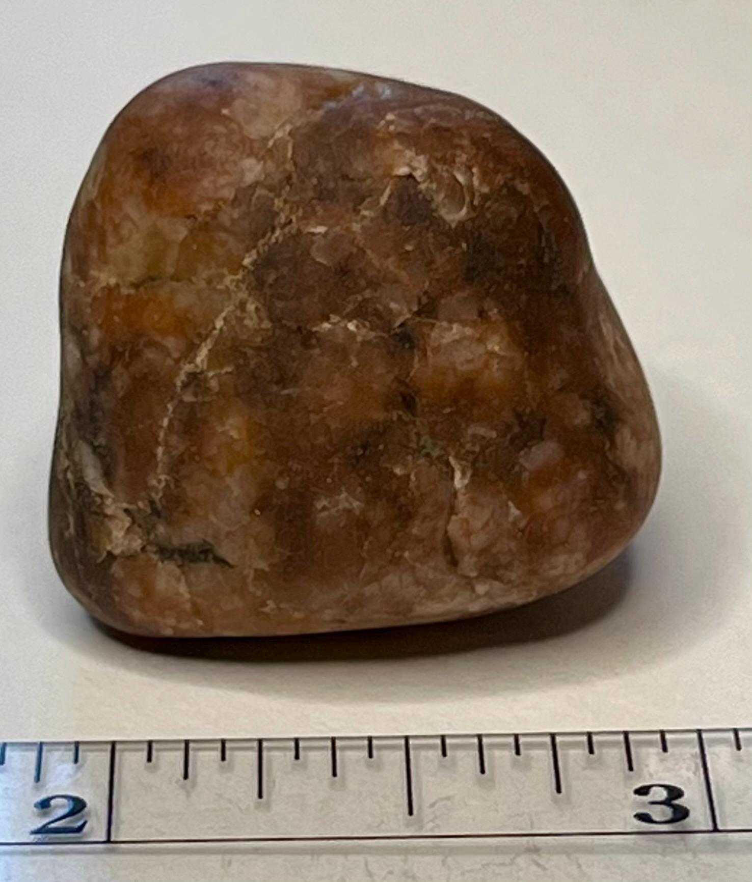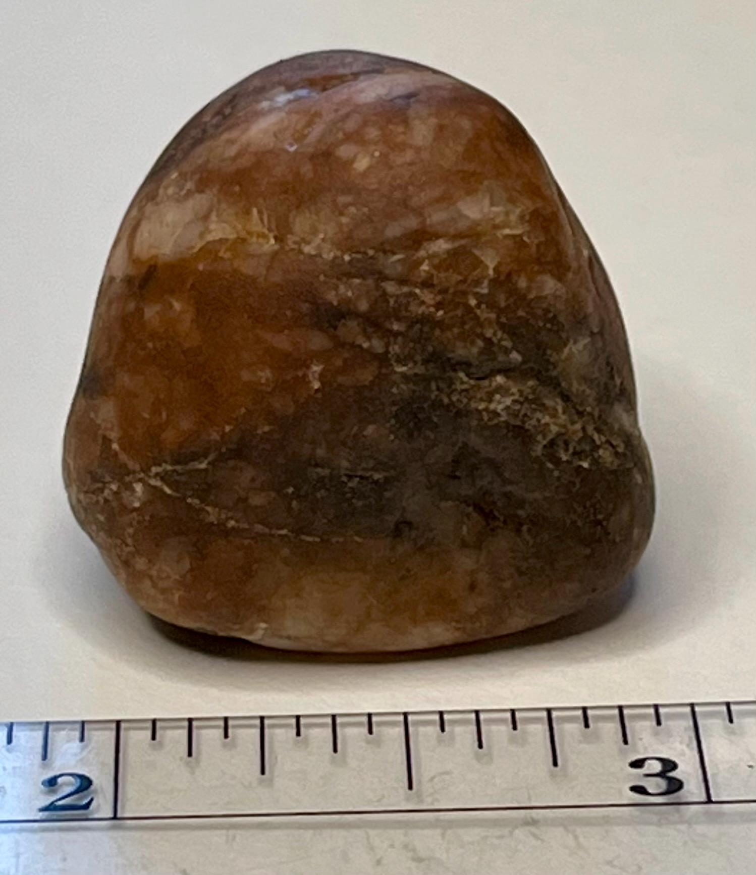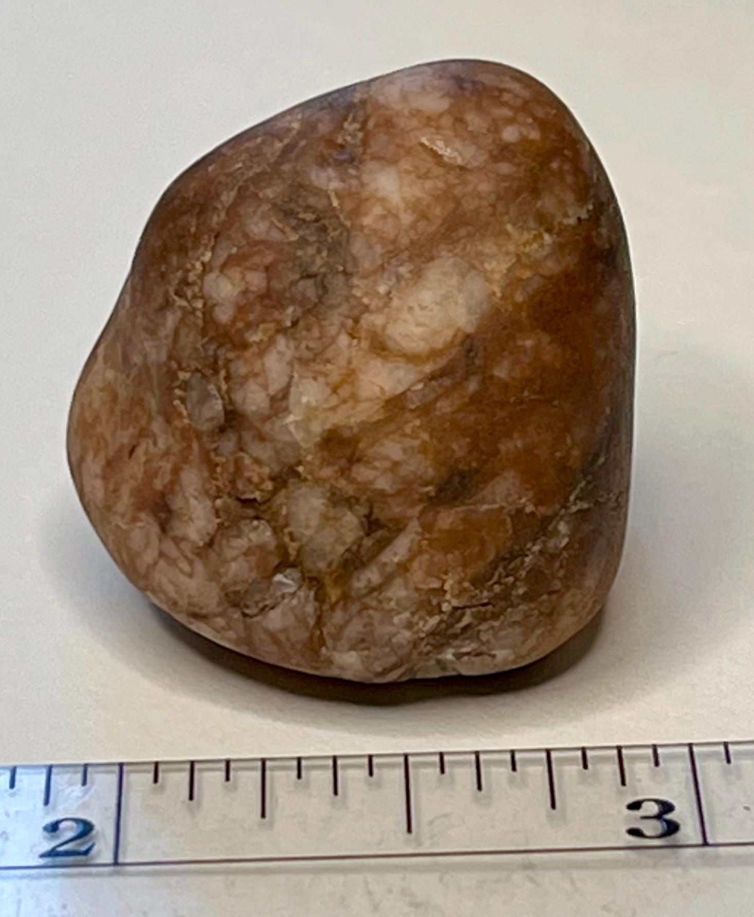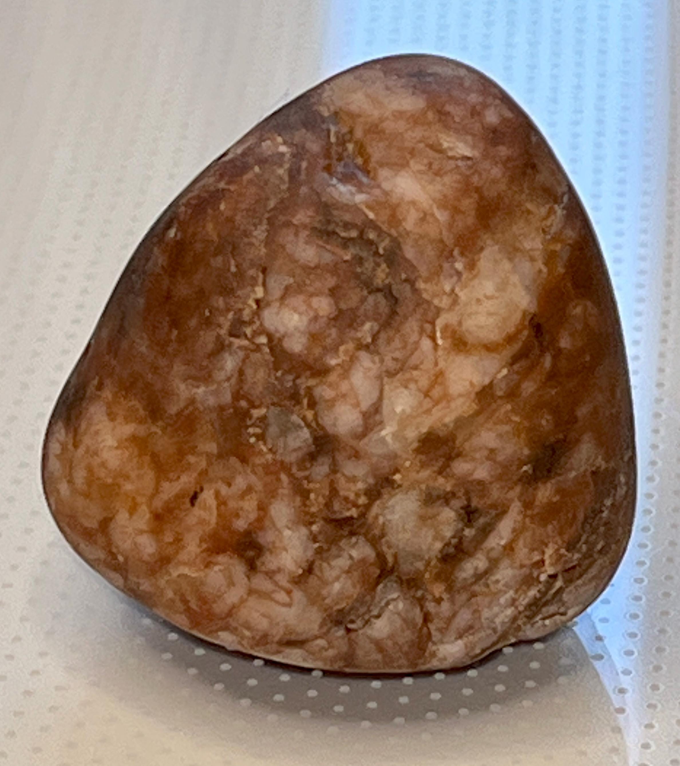 (https://bohomos.com) || This listing is for one (1) tumbled quartz brecciated with red and brown jasper, weighing approximately 1 oz and measuring about 1 inch.