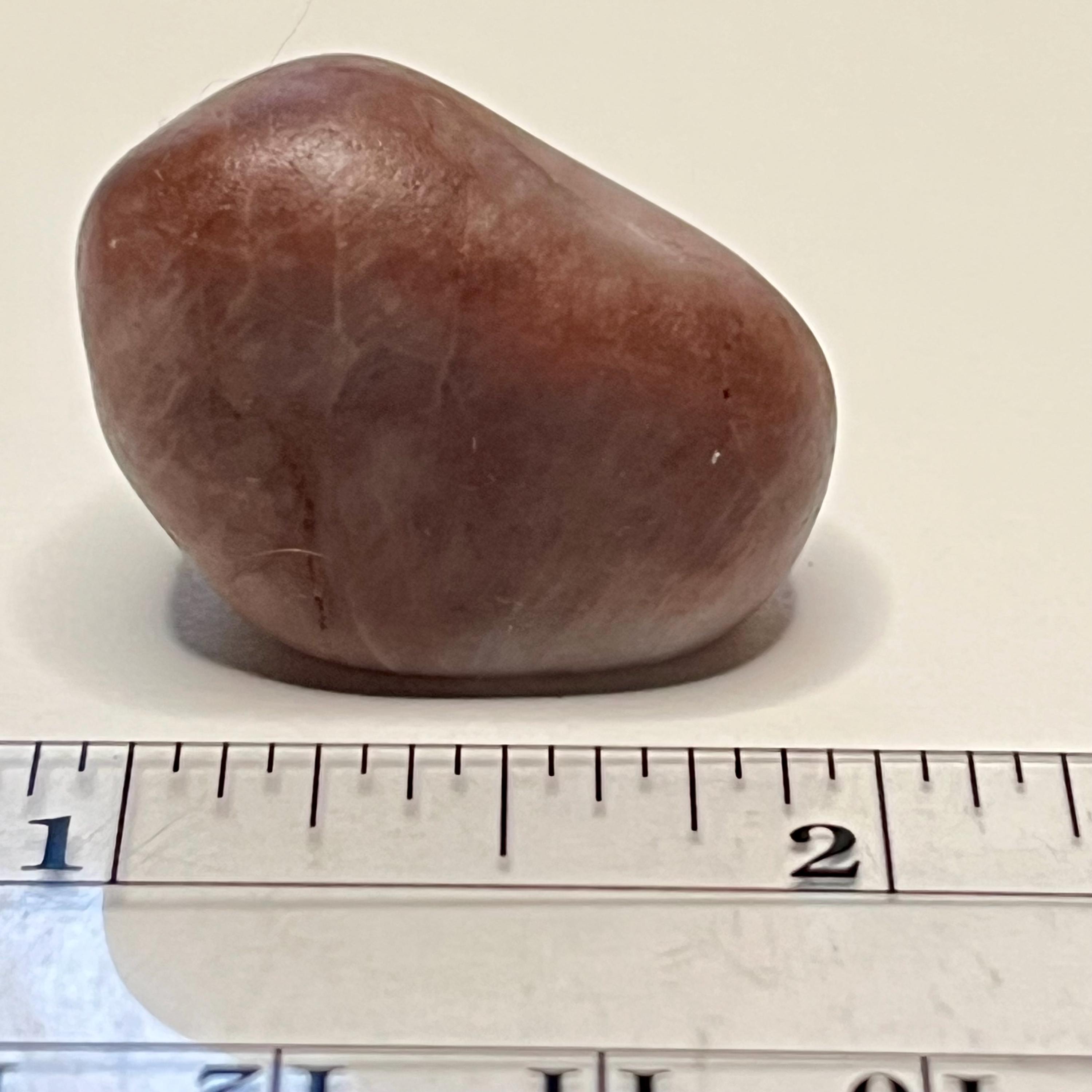 This tumbled ferruginous quartz specimen (also known as fire quartz or hematoid quartz) measures approximately **1.2″ (≈30 mm)** and weighs ~**0.5 oz (≈14 g) (~71 carats)**. Its warm tones and iron-oxide inclusions bring the energy of fire and earth in balance.