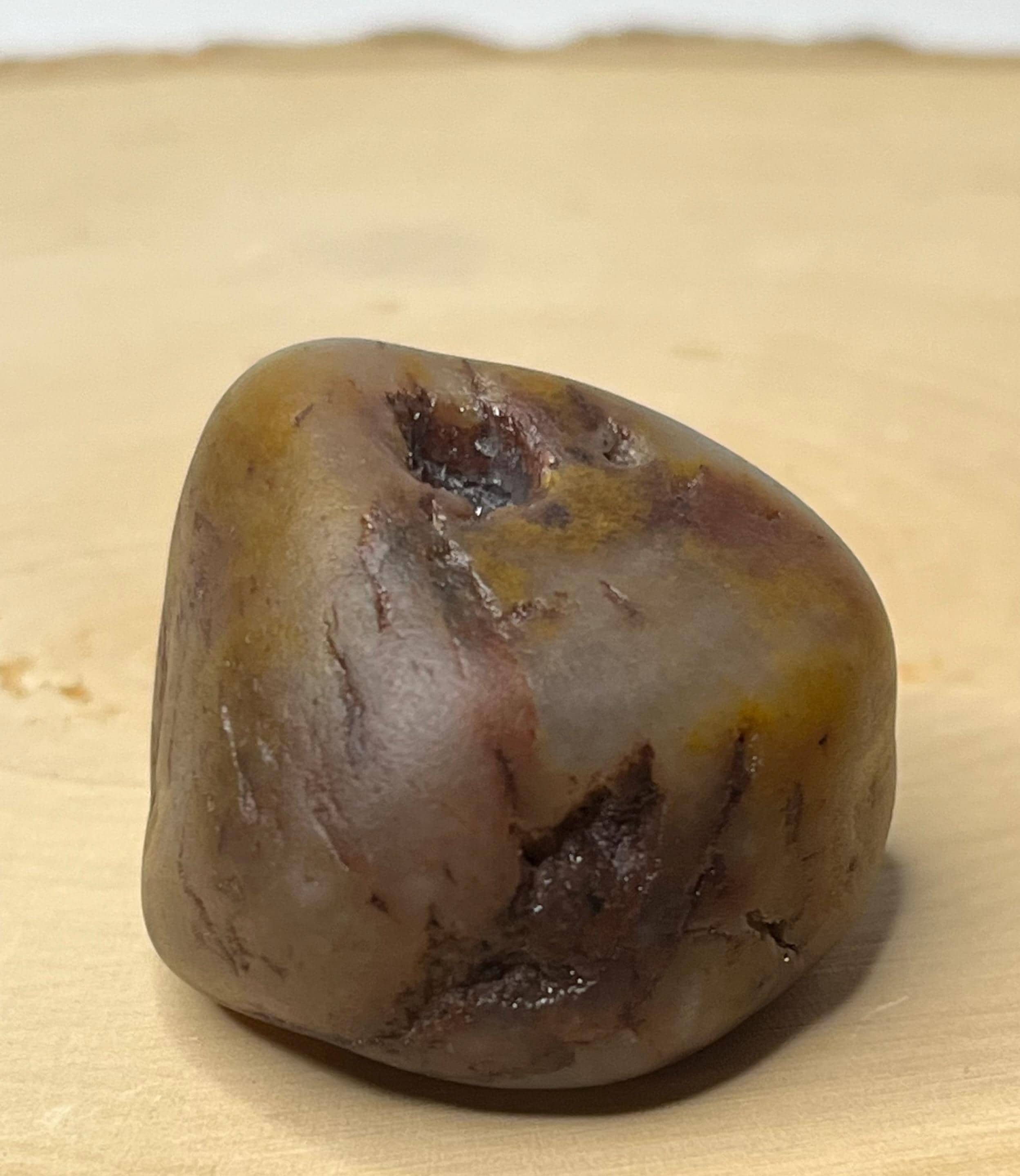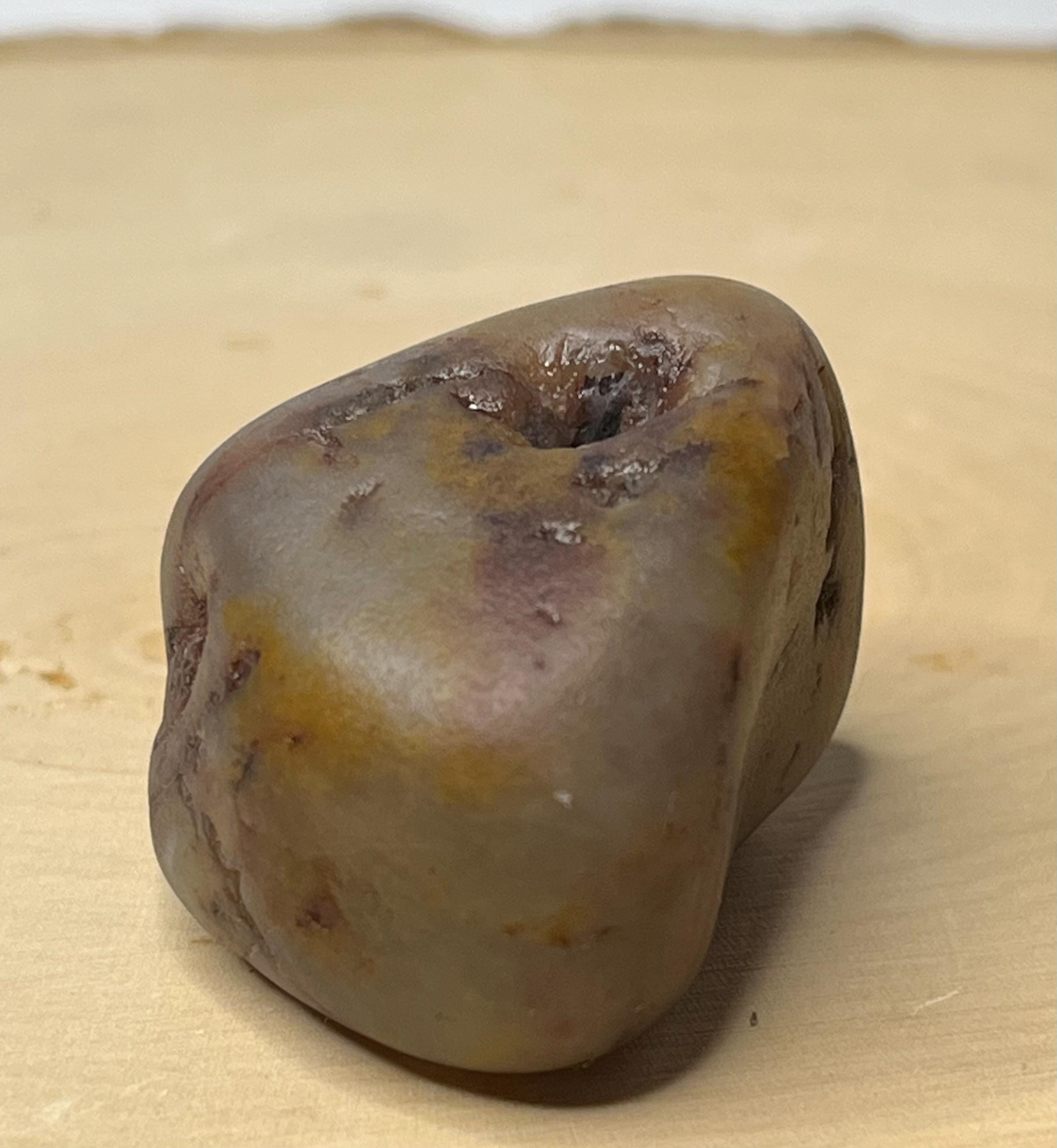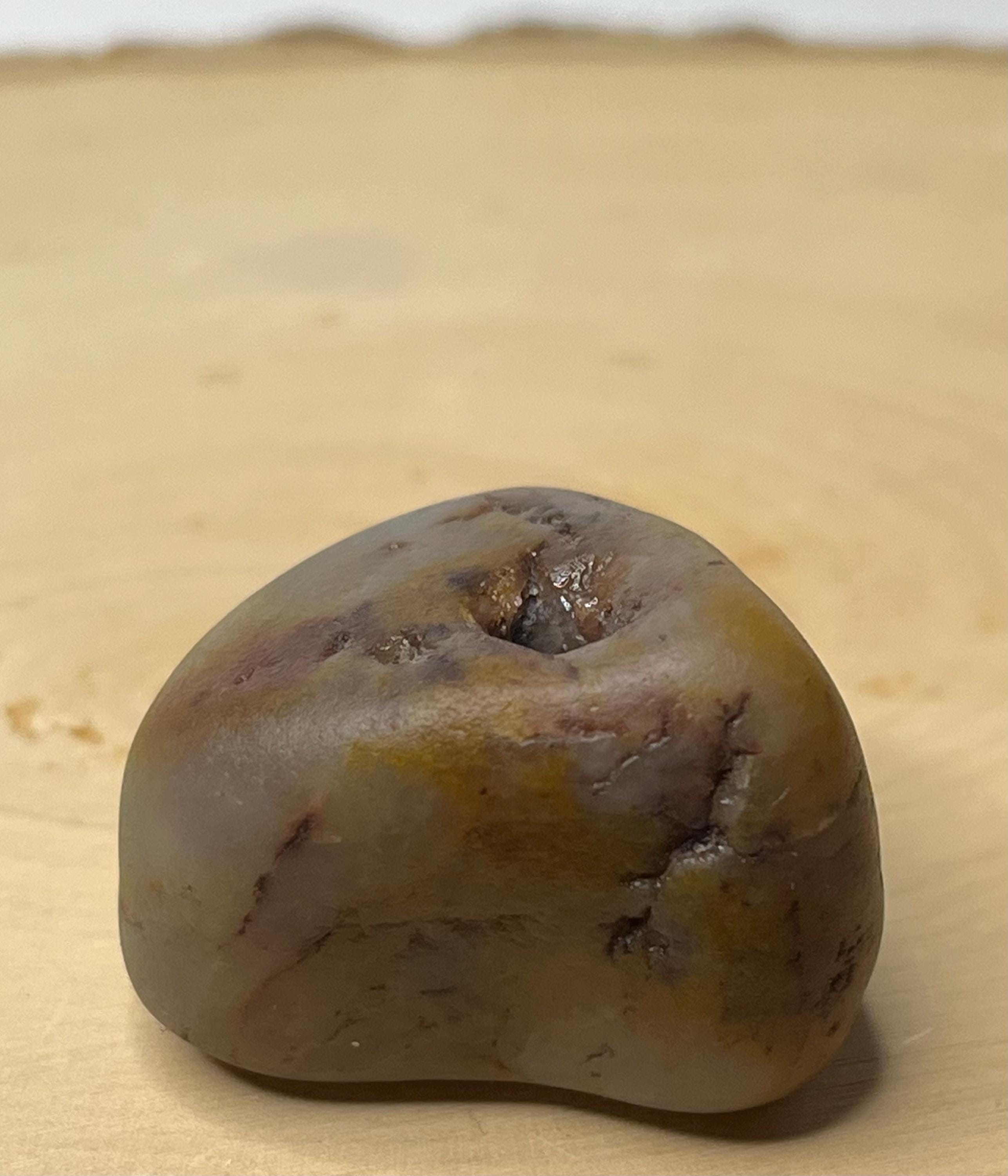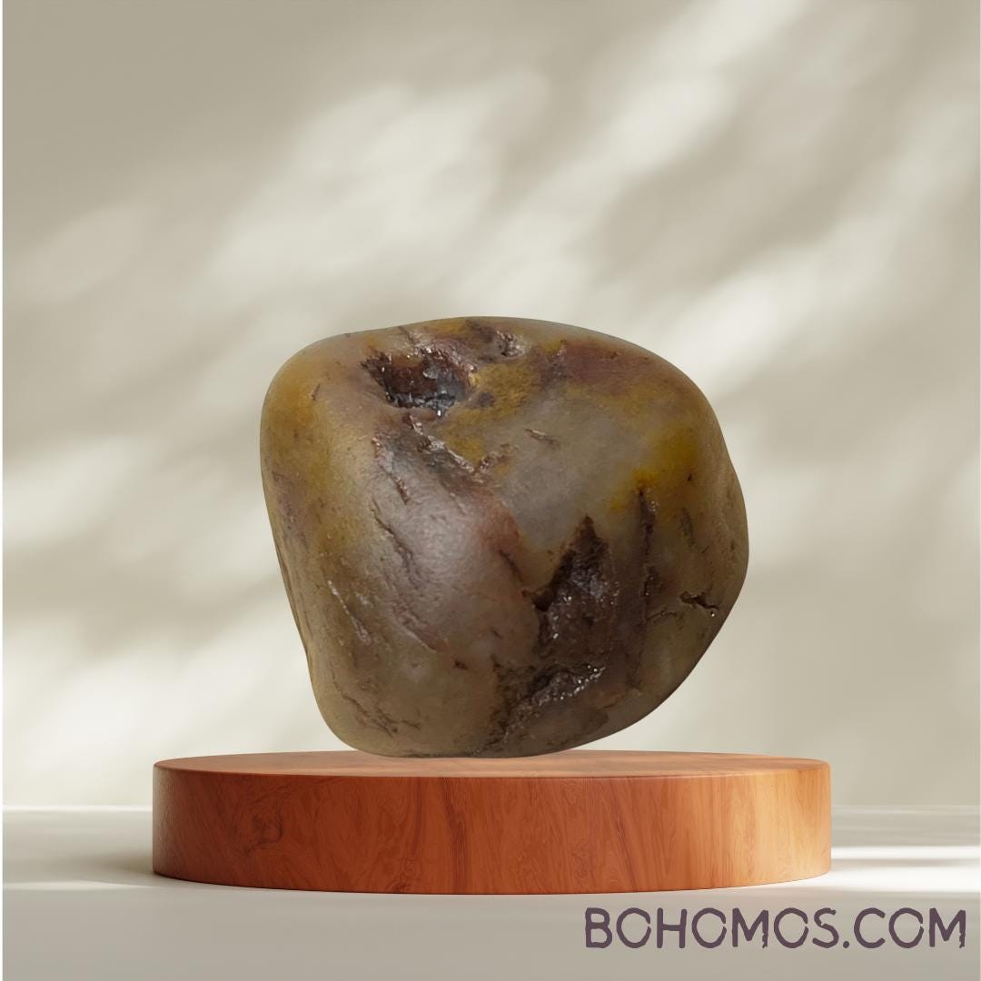 waiting to be blasted free of its patina within the stone. At approximately 1.25 inches and 1.3 ounces, this stage-1 tumbled raw gem is substantial enough for display, lapidary shaping, or a powerful centerpiece for metaphysical jewelry.