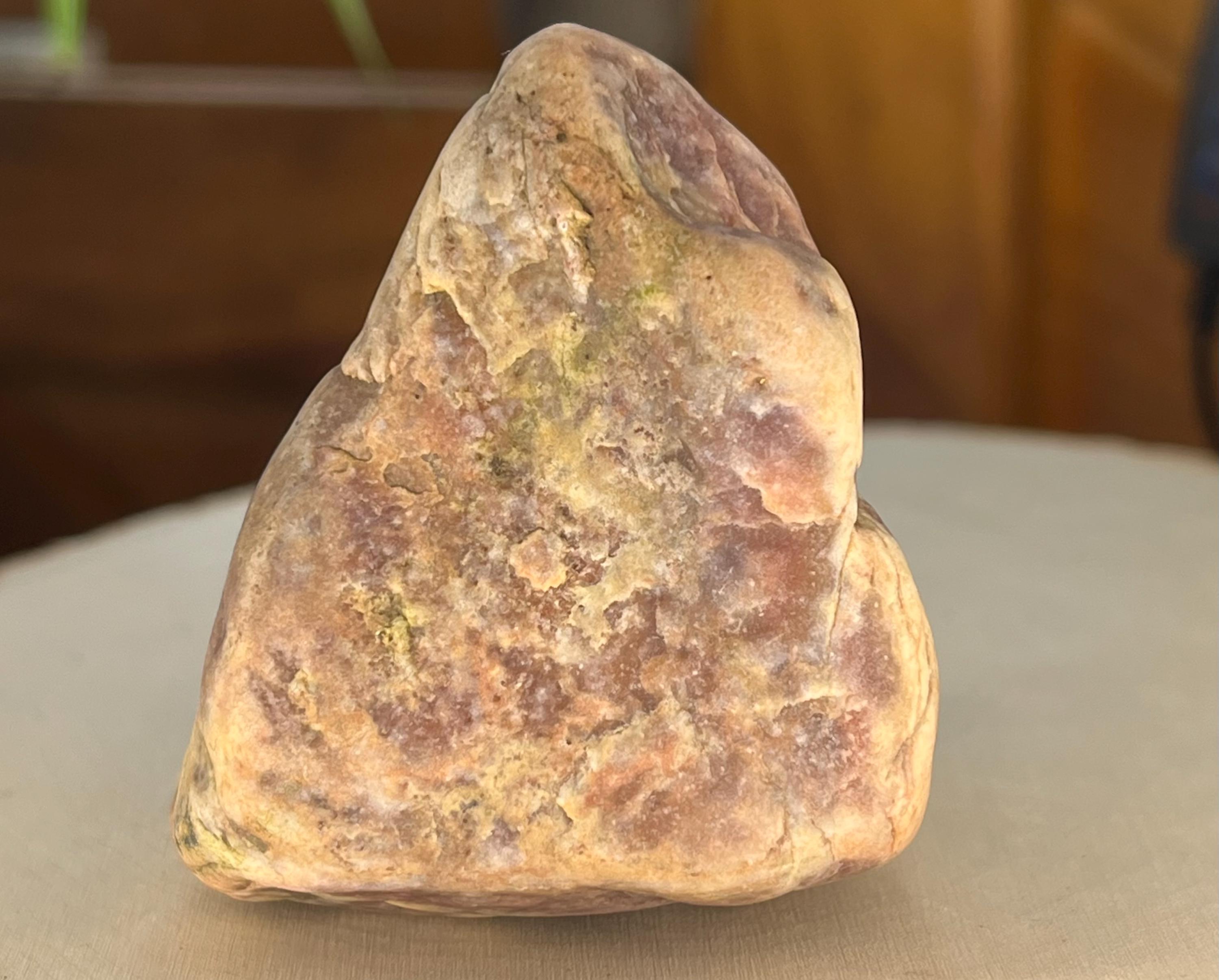 Unlike typical quartzite, this one shows faint rose quartz in spots under light, giving it both texture and dimension. Ideal for artisans designing with natural earth tones or metaphysical collectors seeking a grounded yet uplifting crystal.